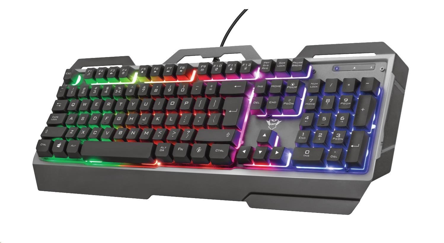 GXT 856 Torac Illuminated Gaming KeyboardGaming keyboard with metal top plate and multicolour illuminationFull-size layout with strong metal top plateBreathing multicolour illumination with adjustable brightness and speedAnti-ghosting: up to 8 simultaneous key pressingsGame-mode switch; directly...