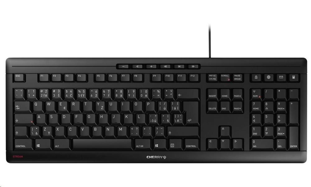 CHERRY STREAM černáStylová a tichá klávesnice je navržena tak, aby uživateli poskytla maximální komfort při každodenní práci. K dispozici je deset multimediálních a kancelářských kláves pro rychlý přístup například ke kalkulačce, e-mailu nebo prohlížeči. Připojení k počítači je realizováno skrze...