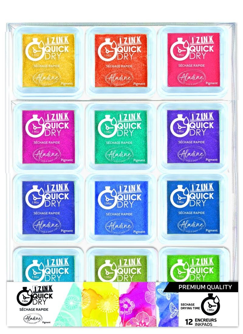 Izink Quick Dry Sada razítkovacích polštářků rychleschnoucích / základní barvy 12 ks