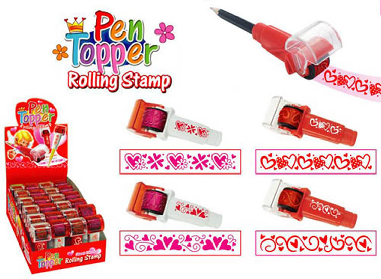 Opravdu univerzální razítko. Rolovací váleček, který jednoduše tiskne překrásný motiv srdíček. Potiskne jakýkoliv materiál. Stačí jen položit a jemně táhnout. Barva tisku je růžová a červená. Tisknoucí váleček lze jednoduše nasadit na tužku a okamžitě použít k ozdobení textu.