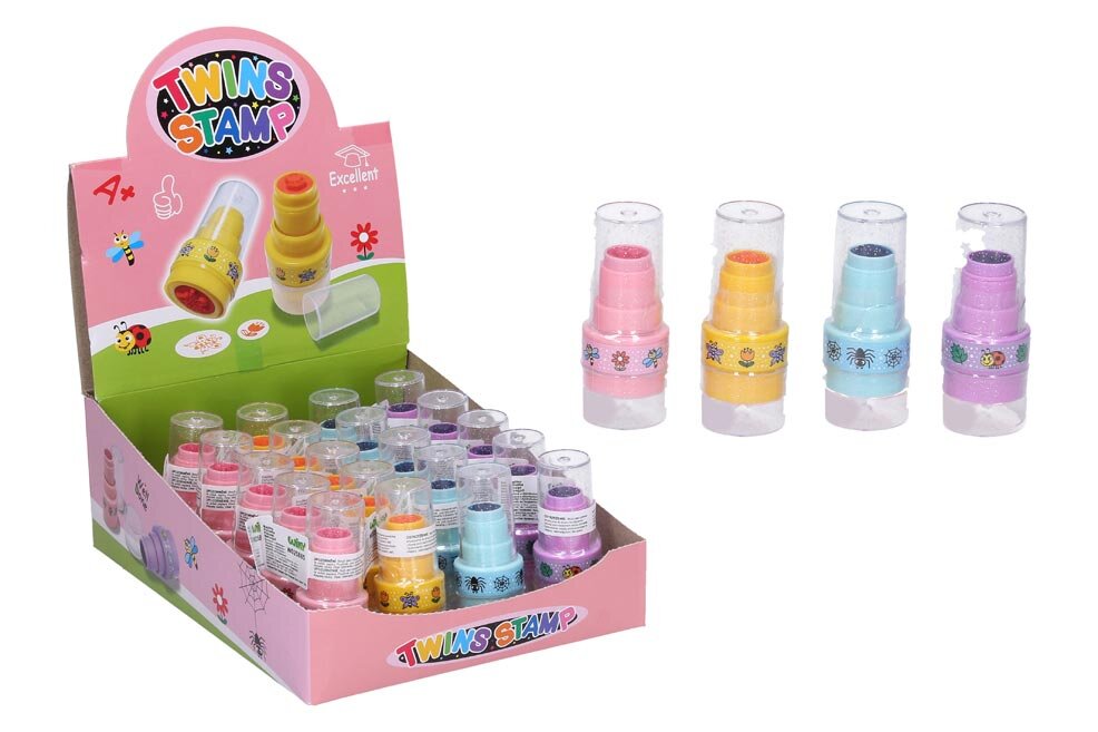 Razítko 2 v 1 v mixu barev a motivů.Určeno pro děti od 3 do 6 let.VAROVÁNÍ:Slouží jako výtvarná pomůcka na potisk papíru. Používat pod dozorem dospělé osoby. Obal odstraňte z dosahu dětí.Všech 24 ks je uložených v krabičce.Dodáváme v mixu 4 ks dle skladové zásoby.Uvedená cena je za 1 ks.