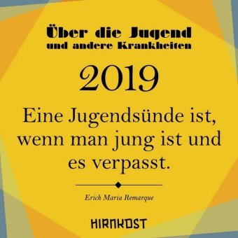 Jugend ist kein Lebensabschnitt, sondern eine Geisteshaltung - eine Erkenntnis, zu der bereits Perikles vor zweieinhalbtausend Jahren gekommen ist. Klaus Farin, einer der bekanntesten Jugendforscher und Autoren zum Thema Jugend, stellt in diesem Tischkalender 52 als Postkarten abtrennbare Zitate zusammen, die sich mal mit Humor, mal auf nachdenkliche Art aber auch mal mit ermutigender Nüchternheit des Themas annehmen.