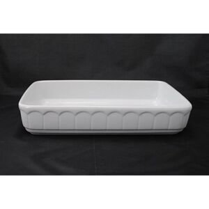 Porcelánový hranatý pekáč o objemu 4,4 l. Barva - bílá. Pekáč je vhodný do myčky nádobí. Rozměry - 37x26 cm ,výška 7 cm. prečítať celé