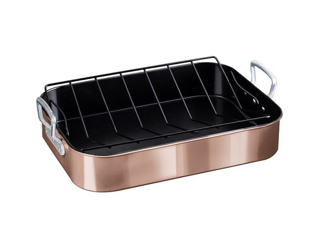 materiál: uhlíková ocel s titanovým povrchemnepřilnavý titanový povrch vhodný pro pečení s minimem tukuvelmi pohodlná údržba, jídlo se nepřipalujeodnímatelný vnitřní rošt s nepřilnavým povrchemrozměry: 41,5 x 32 x 7,7 cmvhodné do trouby do teploty 240°Crosegold metalická vnější barvaECOfriendly,...