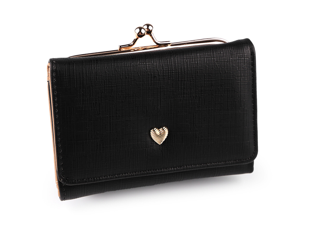 Malá elegantní peněženka potěší ženy všech věkových generací. Na přední klopě je ozdobená kovovým 3D srdíčkem.