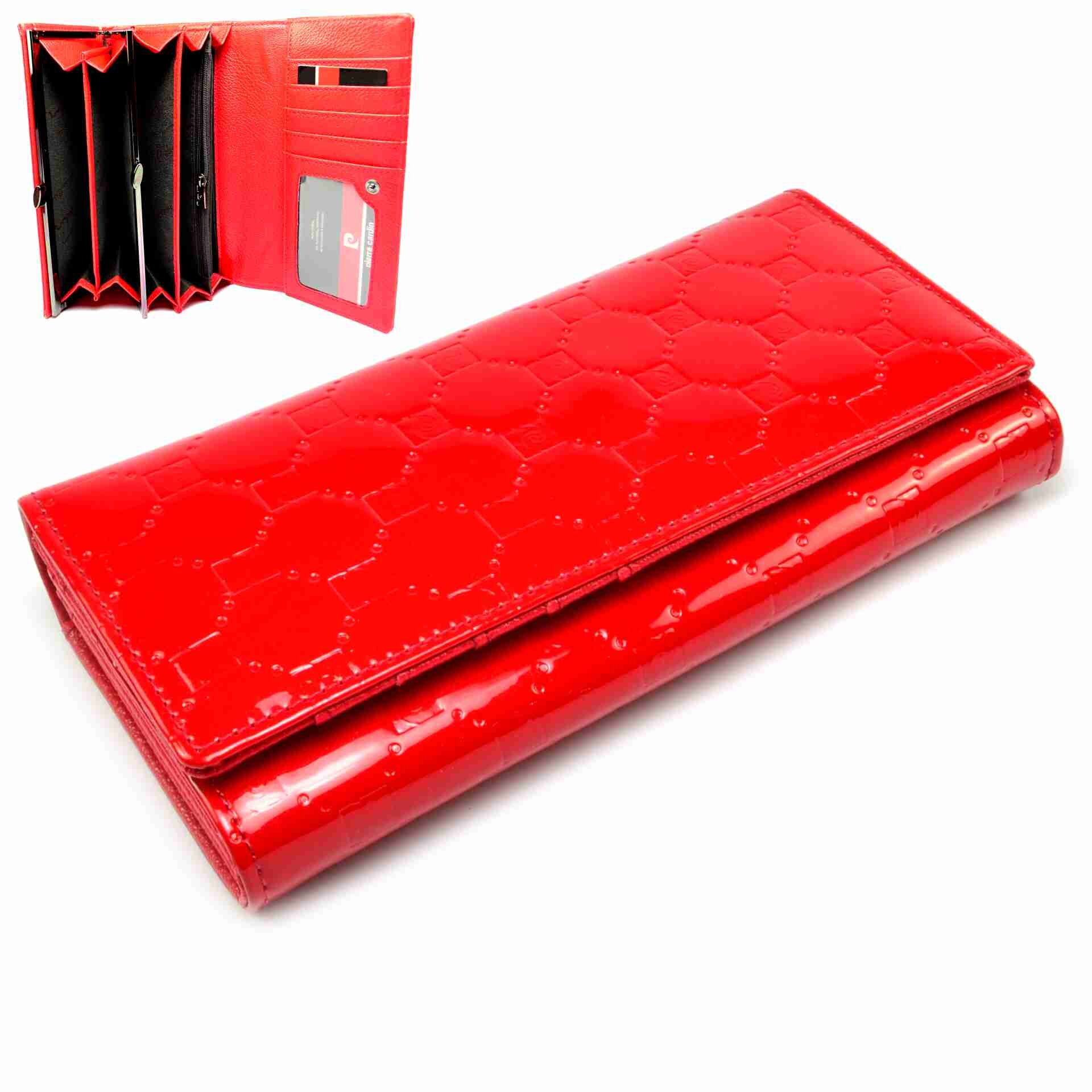 Dámská velká peněženka červená z umělé kůže červené barvy. Peněženka se uzavírá klopou s pevným drukem pro pevné uzavřeí dámské velké peněženky. Po otevření klopy jsou přístupné kapsy na karty, jenda je průhledná a velké kapsy na bankovky. Ve vnitřní části červené peněženky je velký rámový...