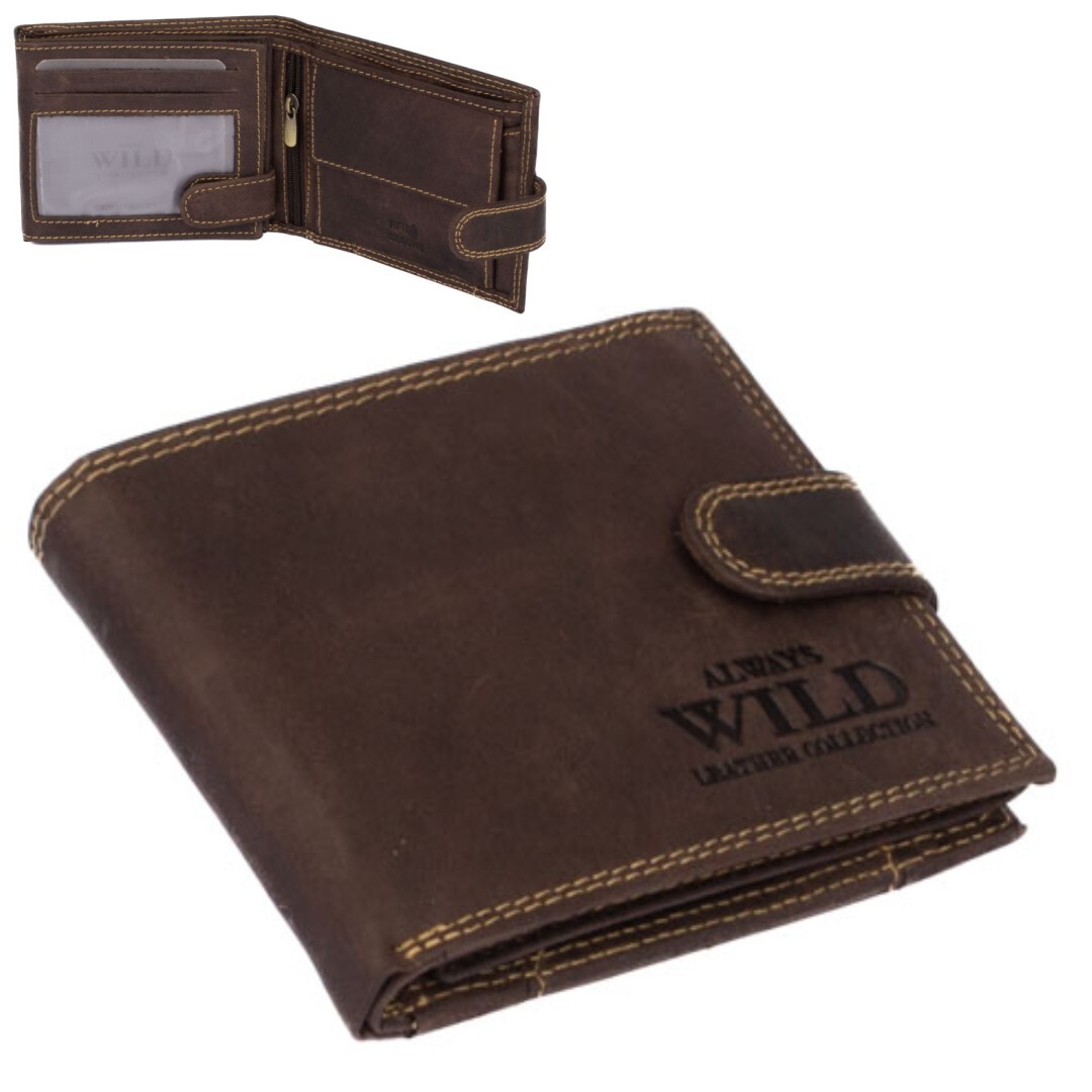 Šedo-hnědá pánská kožená peněženka značky Always Wild je neobvyklá barvou zvenku, ale uvnitř nabízí klasické uspořádání. Pánská kožená peněženka má dostatek kapes na platební karty, doklady i bankovky. Samozřejmostí je mincovník. Peněženka je vyrobená z tmavé šedo-hnědé kůže.