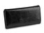 Zavírá se na klopu a patent. Peněženka má celkem 9 přihrádek na karty, z nichž jedna je průhledná. Uprostřed peněženky se nachází 3 kapsy na bankovky, oddělené přepážkami. V jedné přepážce je umístěná kapsa na zip. Vlevo je mincovník, který má kovové zapínání.