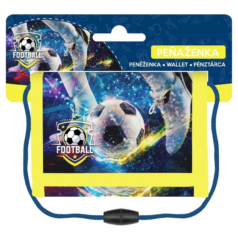 Dětská textilní peněženka Football, v otevřeném stavu má rozměry 27 x 13cm. Obsahuje: kapsa na zip na zadní straně, velká přihrádka na bankovky, 6 menších přihrádek, 1 přihrádka s průhlednou fólií, šňůrka na krk. Cena je za 1 kus. prečítať celé