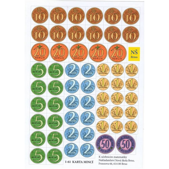Na karte nájdete kompletnú sadu mincí rôznych hodnôt: 27 ks 1 Kč, 16 ks 2 Kč, 14 ks 5 Kč, 14 ks 10 Kč, 7 ks 20 Kč a 6 ks 50 Kč. Všetky mince sú obojstranné a zodpovedajú aktuálnym platným českým minciam, čo zaručuje ich plnú funkčnosť v bežnom obehu. Táto sada je skvelým nástrojom pre jednoduché počítanie peňazí, výuku alebo napríklad pre potreby malých podnikateľov, ktorí chcú mať mince usporiadané a prehľadné.