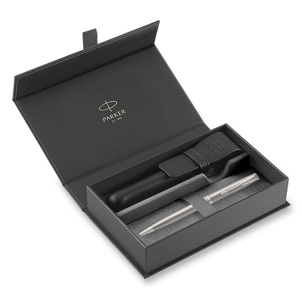 Souprava obsahuje černé kožené pouzdro a kuličkové pero Parker Sonnet Stainless Steel GT s tělem z broušené nerezové oceli v kombinaci s doplňky pokovenými paládiem.otočný mechanismusčerná náplňDodáváno v elegantním dárkovém balení s PU pouzdrem. prečítať celé