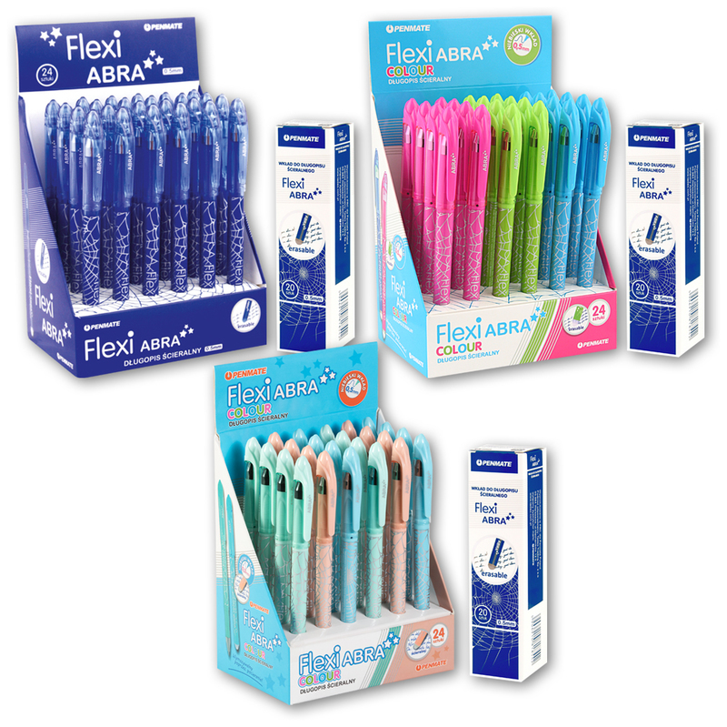 Długopisy wymazywalne Flexi Abra 24 szt.+20 szt.wkładów, Zestaw Promocyjny, Penmate