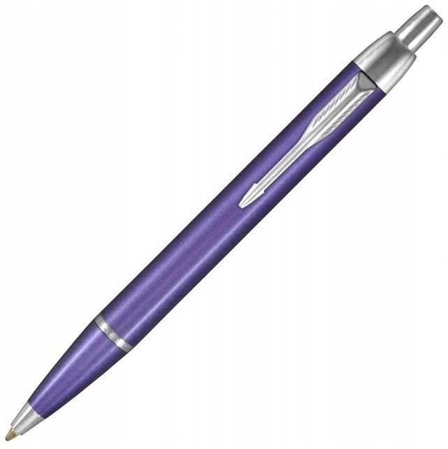 Parker IM jest inteligentnym mariażem formy i funkcji. Każdy szczegół, począwszy od stylizowanego na kształt strzały klipsa, do uchwytu ze stali nierdzewnej, jest starannie zaprojektowany na rzecz komfortu i praktyczności. Solidny, mosiężny korpus pokryty czarnym lakierem. Wykończenia chromowane. Wysposażony w przyciskowy mechanizm wysuwania wkładu.