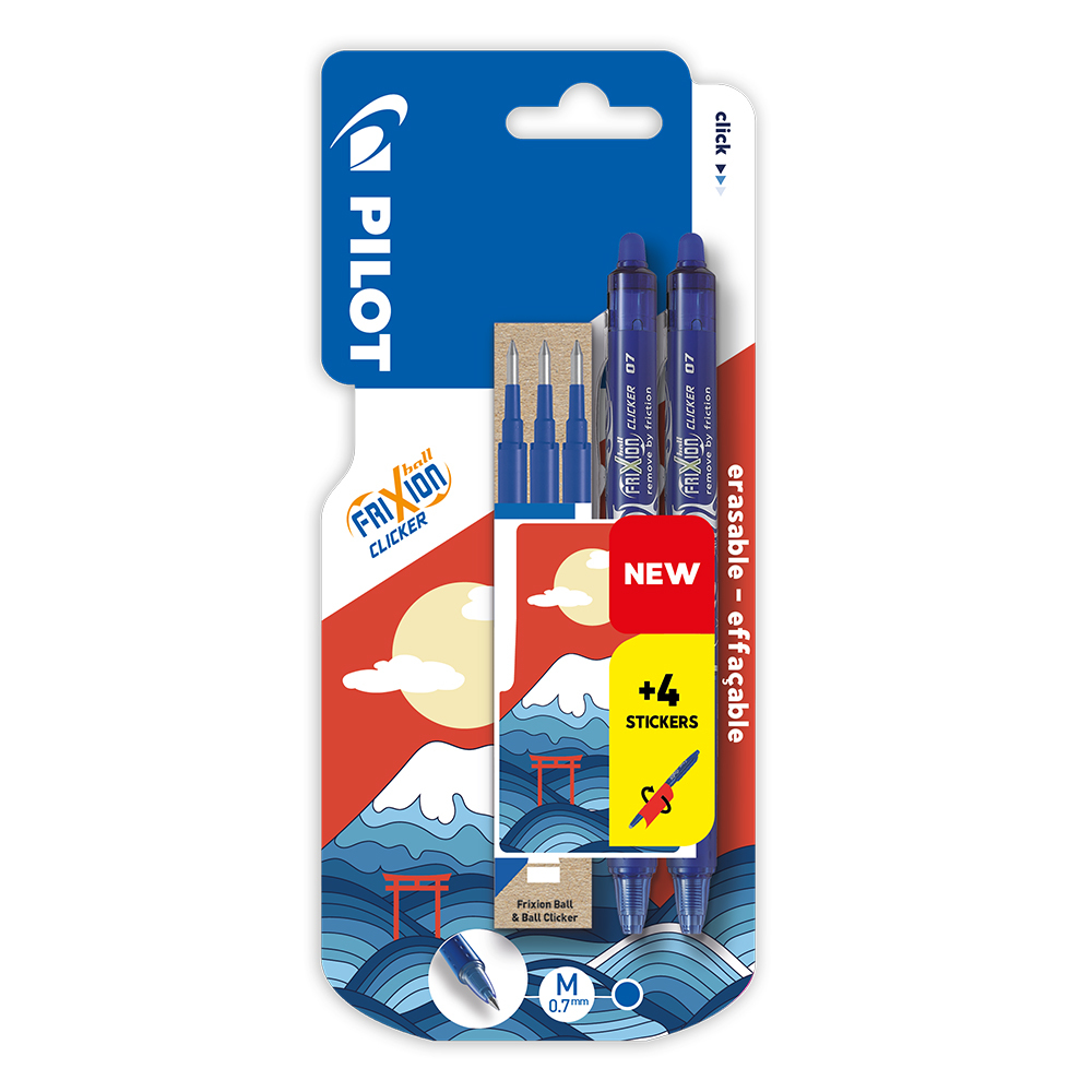 Roller gélový/gumovací PILOT Frixion Ball Clicker 0,7 mm, modrý - sada 2 ks + 3 ks náplní