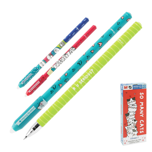 Roller gelový/gumovací M&G iErase So Many Cats Pencil 0,5 mm, modrý