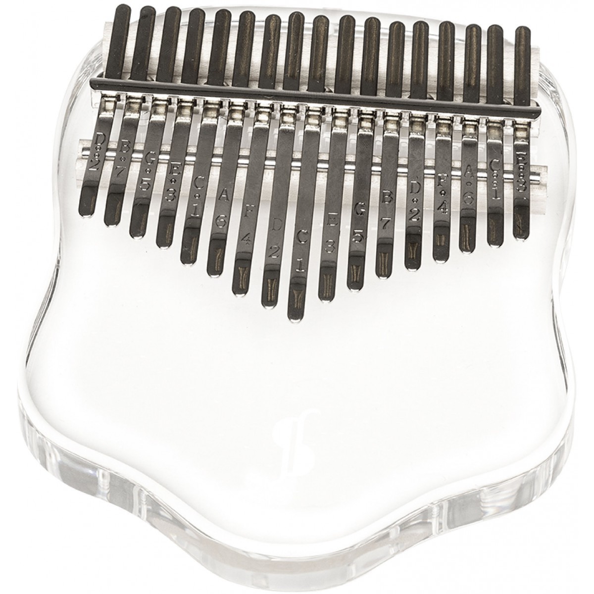 Profesionální kalimba, tělo čirý akrylát, 17 ocelových lamel, diatonické ladění C dur (C4 - E6), rozměry 195 x 165 x 65 mm, hmotnost 750 g, dodáváno vč. pouzdra, ladicího kladívka a čisticího hadříku. Barva čirá.