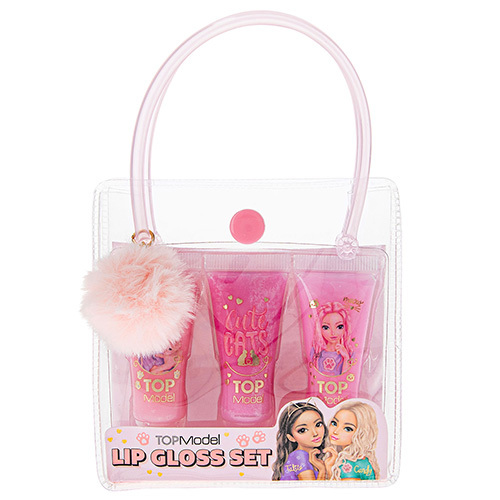 Sada lesků na rty ve foliové taštice Top Model, 3x lesk na rty: broskev, jahoda, borůvka
