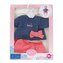 Obleček určený zejména pro panenky Petitcollin řady Petit Câlin odpovídající velikosti. Skládá se z modrého trička s mašlí, růžové sukýnky a modré čelenky s mašlí. Oblečky Petitcollin jsou pečlivě zpracované, vynikají francouzskou elegancí, jedinečnou barevností a vzory, díky kterým jsou poutavé...