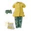 Obleček určený zejména pro panenky Petitcollin řady Finouche. Skládá se z okrové halenky, vzorovaných zelených kalhot, šedé vzorované tašky a čelenky. Oblečky Petitcollin jsou pečlivě zpracované, vynikají francouzskou elegancí, jedinečnou barevností a vzory, díky kterým jsou poutavé a nezaměnitelné. Dodáváno v papírové krabičce s průhledem a plastovým ramínkem. Hlavní vlastnosti:pro panenky o výšce 48 cmhalenka, kalhoty, taška a čelenkavyrobeno ve Francii