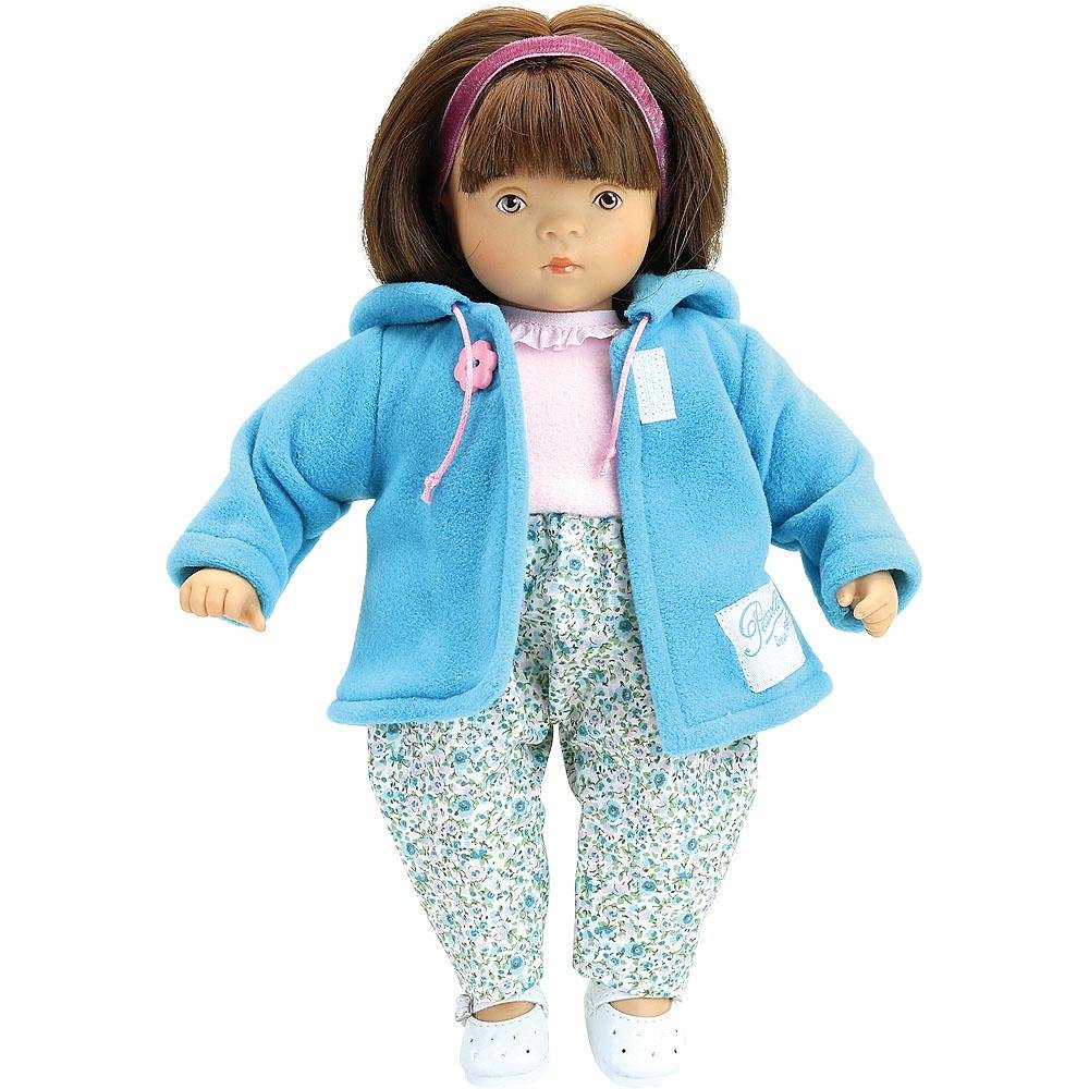 Panenka s měkkým tělem, vinylovými končetinami a hlavou s nemrkacíma hnědýma očima a hnědými nylonovými vlasy. Je oblečena do jemně vzorovaného overálku, modrého kabátku a botiček. Vyrobeno ve Španělsku.Francouzská značka Petitcollin byla založena v roce 1860. Tolikrát se vrátila úspěšnými...