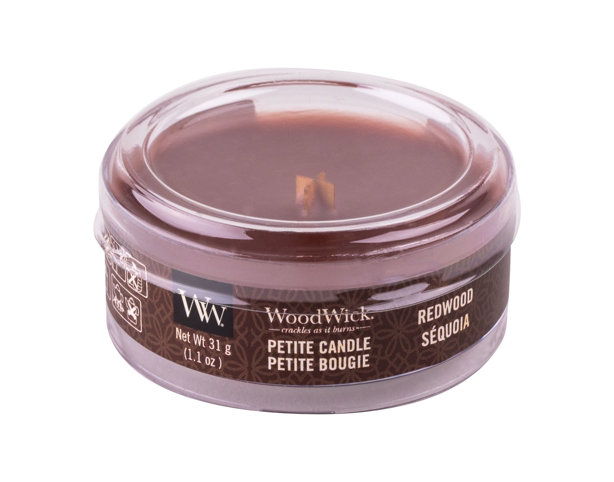 Vonná svíčka WoodWick Redwood je vyrobená ze směsi prémiového parafínu a sójového vosku s vysoce koncentrovanými vůněmi. Inovativní přírodní dřevěný knot Pluswick® Innovation vytváří uklidňující zvuk praskajícího ohně.