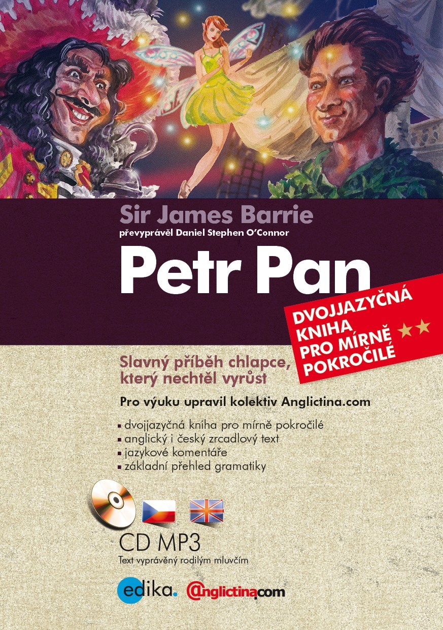 Slavný příběh o chlapci, který nechtěl vyrůst, se dočkal mnoha filmových, divadelních i televizních zpracování. Náš titul obsahuje původní divadelní hru převyprávěnou Danielem Stephenem O Connorem. Pro snadnější porozumění je na pravé straně český zrcadlový překlad. Na konci naleznete komentáře k vybraným jazykovým jevům, které, jak doufáme, přispějí ke zdokonalení vaší angličtiny. Anglický text si můžete poslechnout na přiloženém CD.
