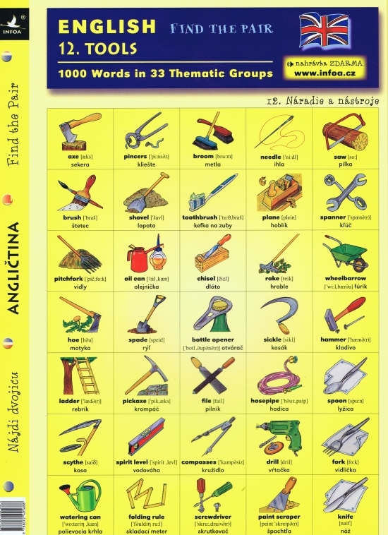 Pexeso - zábavná forma učenia - 1000 slov v 33 tematických skupinách. Okrem kartičiek na vystrihnutie obsahuje úvodný list s prehľadom slovíčok, ktorý možno založiť do obalu. Na jeho opačnej strane sú ďalšie aktivity na precvičenie slovnej zásoby. prečítať celé