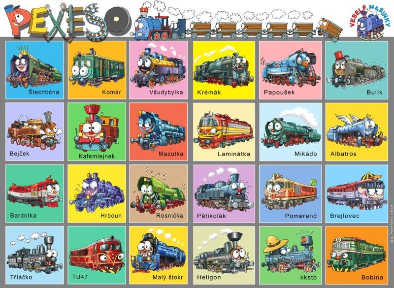 Originální ilustrace od Josefa Pospíchala, vytvořené dle autentických předloh mašinek. Pexeso je určeno všem milovníkům vláčků a mašinek. Obsahuje 24 typů mašinek, včetně jejich přezdívek, dále rozvrh hodin pro školáky a dvě knižní záložky s mašinkami. S touto hrou si s dětmi užijete nezapomenutelné společné chvilky. Přinese vám spoustu legrace a budete si ještě navíc cvičit postřeh a paměť.