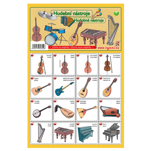 - Obsahuje sady kariet s motívmi hudobných nástrojov.