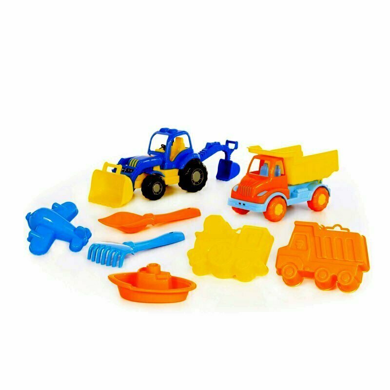 Polesie 81414 Zestaw do piasku Nr631 w plecaku z traktorem-koparką Leon
