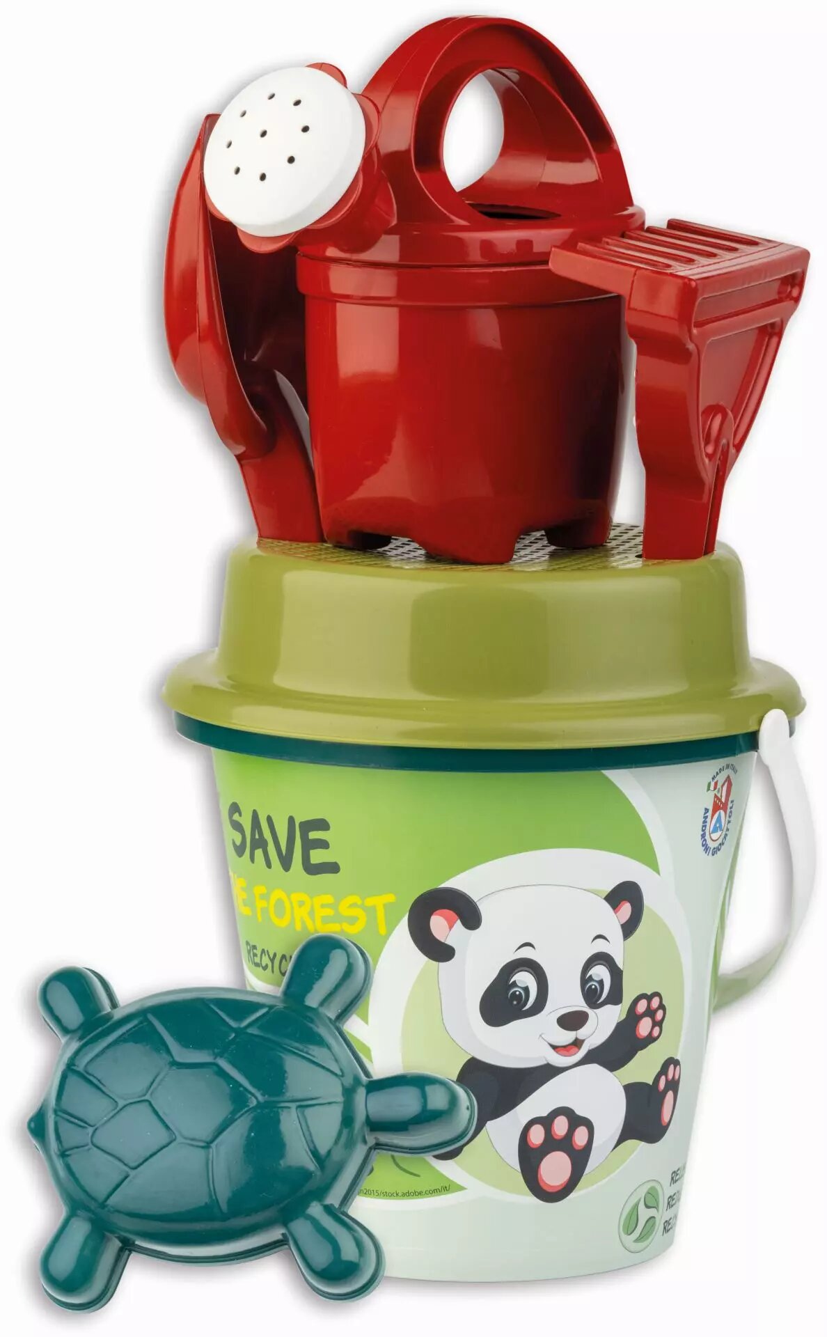 6dílná sada na písekTato sada na písek je vyrobena z kvalitních recyklovaných plastů v Itálii a obsahuje následující prvky: Kyblík: Průměr: 17 cm, Výška: 16 cm Konvička 0,5 l Sítko Lopatka Hrabičky Tvořítko ve tvaru želvičkyRozměry sady: Výška: 35 cm, Váha: 0,42 kg prečítať celé