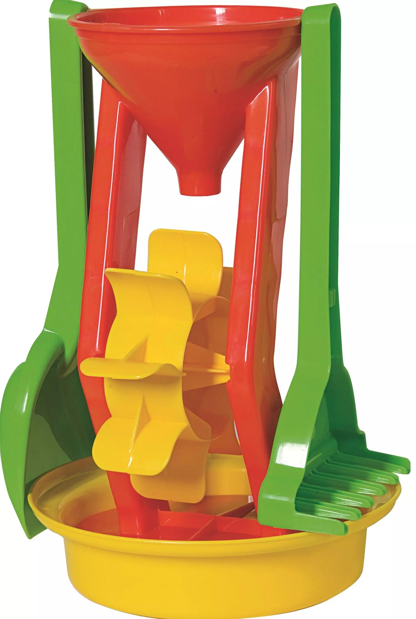 4dílná sada na písekTato sada na písek je vyrobena z kvalitních plastů v Itálii a obsahuje následující prvky: Mlýnek s jedním lopatkovým kolem výšky 25 cm Sítko o průměru 17 cm Lopatka HrabičkyParametry sady: Výška 26 cm, váha 0,34 kg prečítať celé