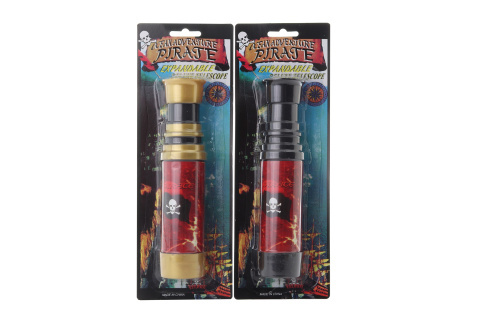 Pirátský plastový dalekohled. Délka ve složeném stavu cca 19 cm. Rozměry balení cca 28 x 10 x 5 cm. Věk 3+ prečítať celé