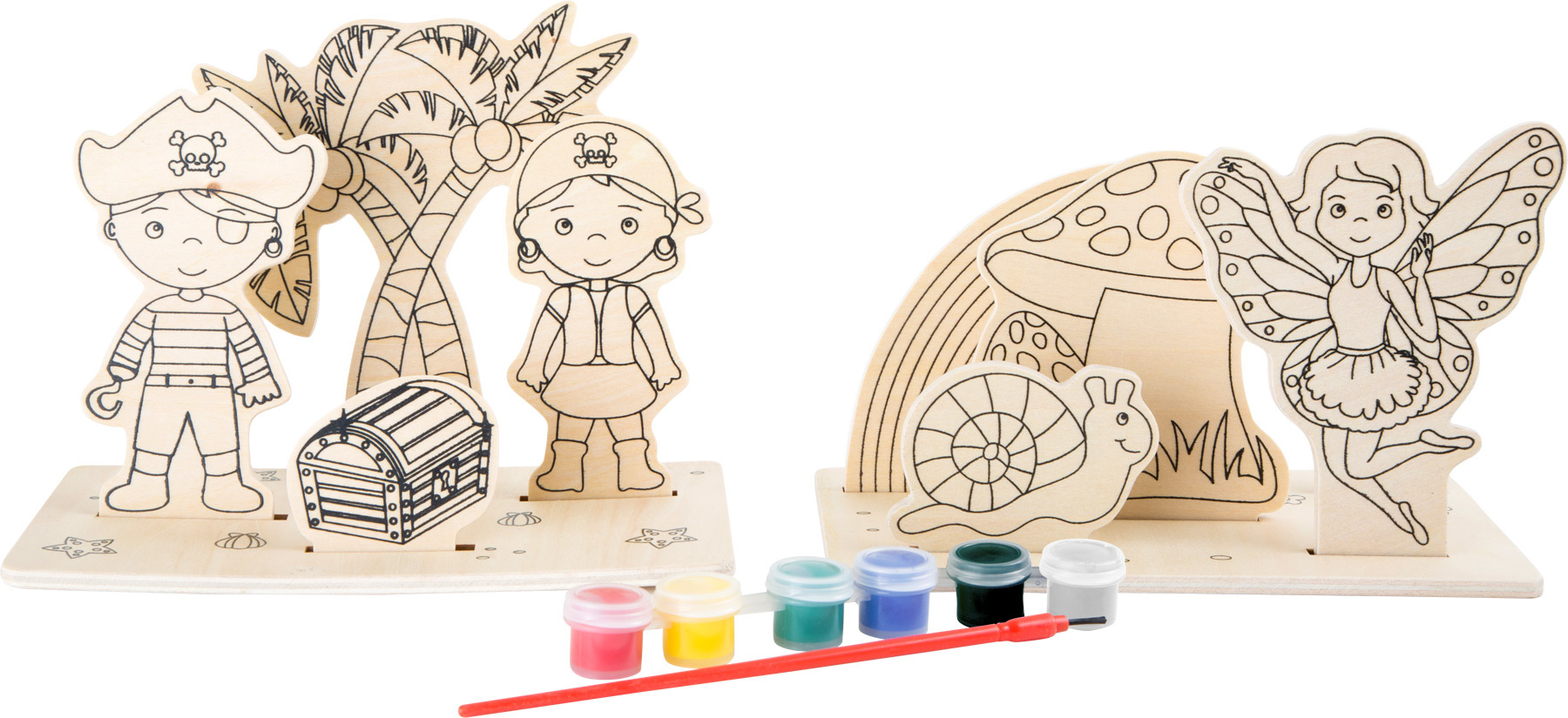 Small Foot Dřevěný barevný 3D obrázek piráti a víly