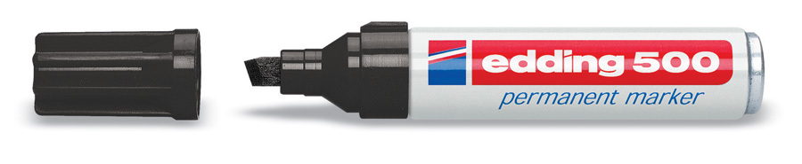 Permanentní popisovač Edding 500 se seříznutým hrotem obsahuje inkoust se slabým zápachem. Znovu naplnitelný. Zkosený hrot, šíře stopy: 2-7 mm.