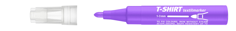 Fialový popisovač na textil s kulatým hrotem. Šíře stopy 1-3 mm. Pro fixaci barev je nutné zažehlení (bez páry). Je vhodný pro popisování téměř všech druhů textilních materiálů, odolný proti praní. prečítať celé