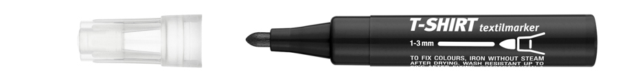 Černý popisovač na textil s kulatým hrotem. Šíře stopy 1-3 mm. Pro fixaci barev je nutné zažehlení (bez páry). Je vhodný pro popisování téměř všech druhů textilních materiálů, odolný proti praní. prečítať celé