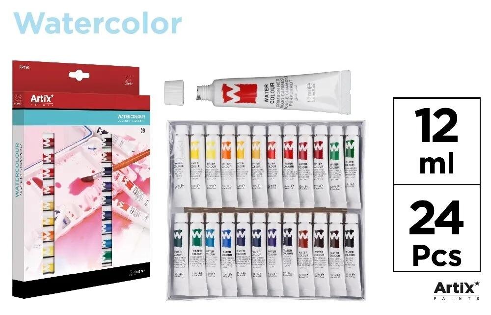 Zestaw farb akwarelowych 24 kolory 24x12ml/opak Artix prečítať celé