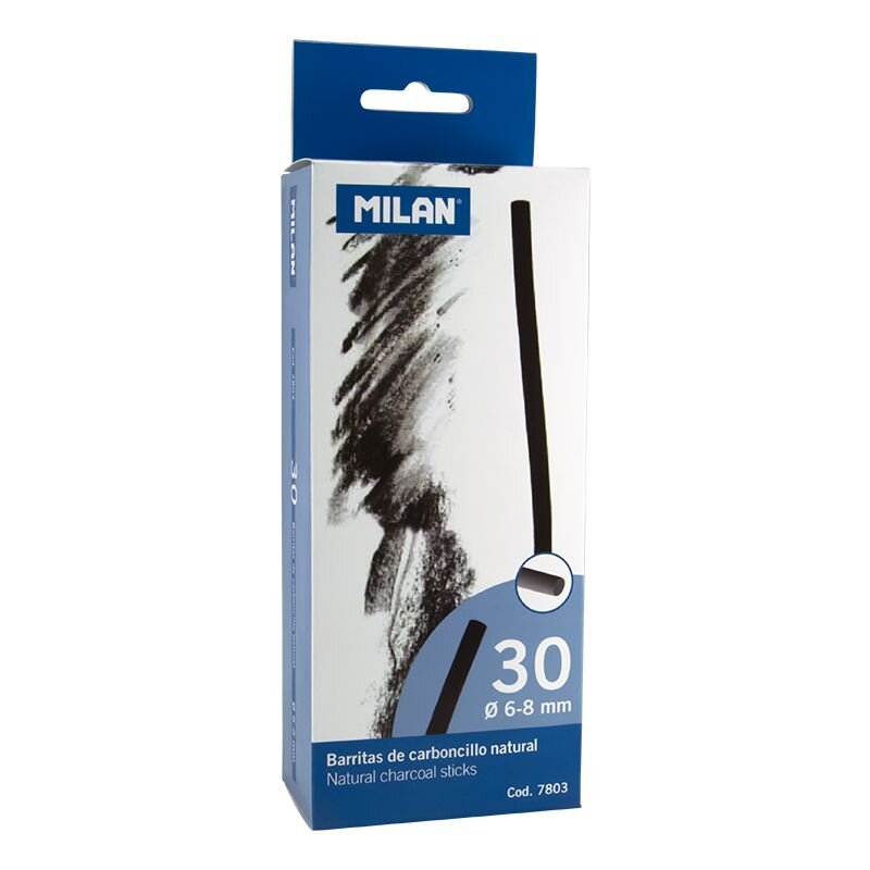 MILAN přírodní uhly kulaté průměr 6-8 mm • průměr 6-8 mm, délka 15 cm, 30 kusů v balení • přírodní uhly vyrobené z olšového dřeva spálené při vysokých teplotách • uhly se před procesem předehřívání vaří a spalují ve vysokoteplotních pecích • získaným dřevěným uhlím je nepravidelná šedočerná tyčinka, která vytváří tmavě šedou stopu • MILAN 7803EAN: 8411574078036