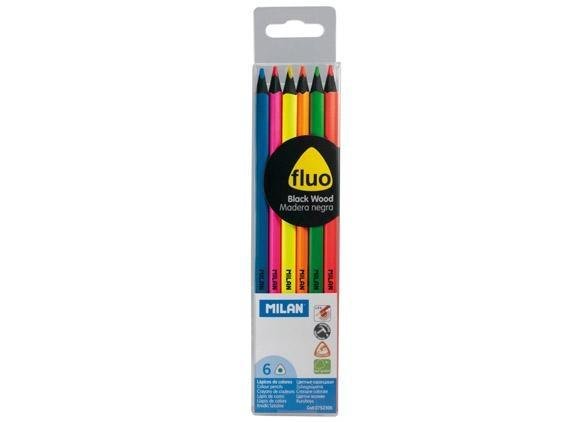 Fluorescencyjne kredki, Trójkątne i z czarnym drewnie lipowym. Kredki MILAN zawierają wysokiej jakości pigmenty i system. ochrony rysika LPS, który zwiększaich odporność na złamanie. Wewnątrz złamać. kredki, rysik i drewno sklejone są zesobą na całej długości, w taki sposób, że nie można ich rozdzielić ani złamać.