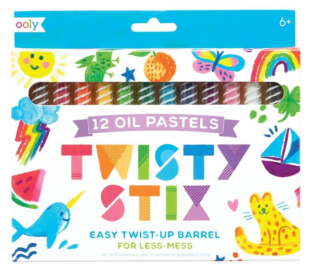Ooly Twisty Stix to zestaw dwunastu olejnych pasteli w plastikowych oprawkach. Nie brudzą rąk, są łatwe w użyciu, by dostać się do kredki wystarczy ją wykręcić.Lubisz pastele, ale za śladami, które zostawiają na dłoniach nie przepadasz? Jest na szczęście rozwiązanie tego rozdźwięku. Olejne...
