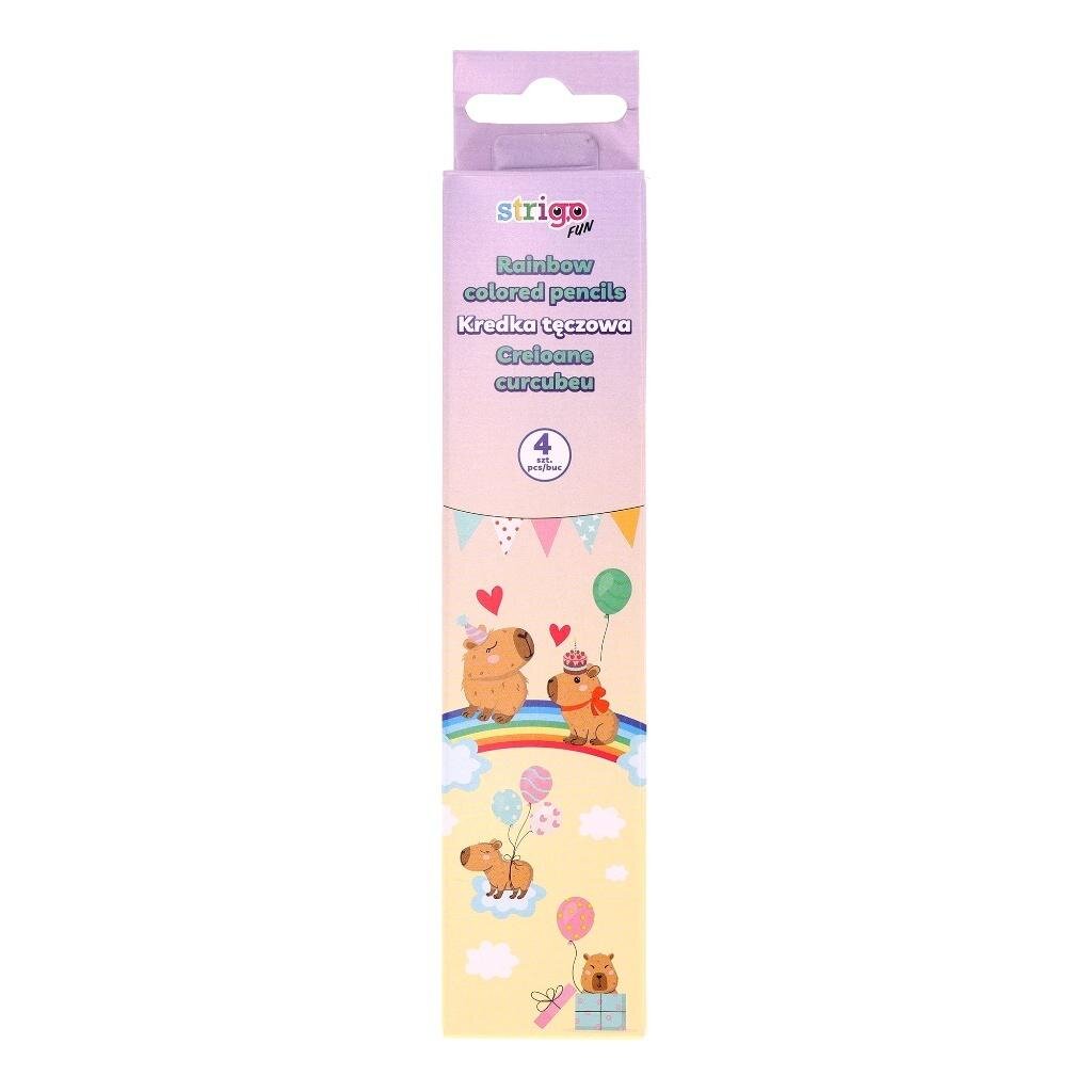 Zestaw 4 kredek z wielokolorowym wkładem z limitowanej kolekcji STRIGO Kapibara to praktyczne i efektowne rozwiązanie, które może zastąpić całe opakowanie klasycznych kredek.