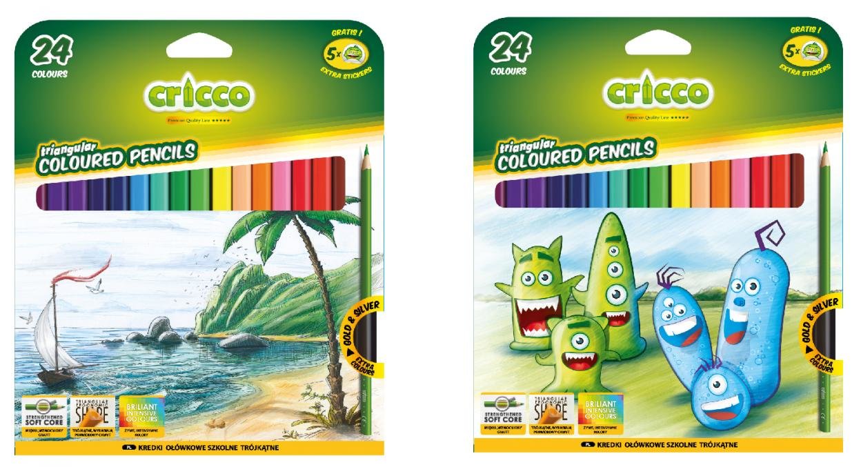 miękki, wzmocniony grafit idealny do kolorowania- trójkątny ergonomiczny kształt wyrabiający prawidłowy chwyt- intensywne i żywe kolory- łatwe w temperowaniu- produkt opracowany w Europie zgodnie z wymogami wspólnotowymi- złota kredka w pudełku- ekstra naklejki w pudełku- różne wzory opakowań,...