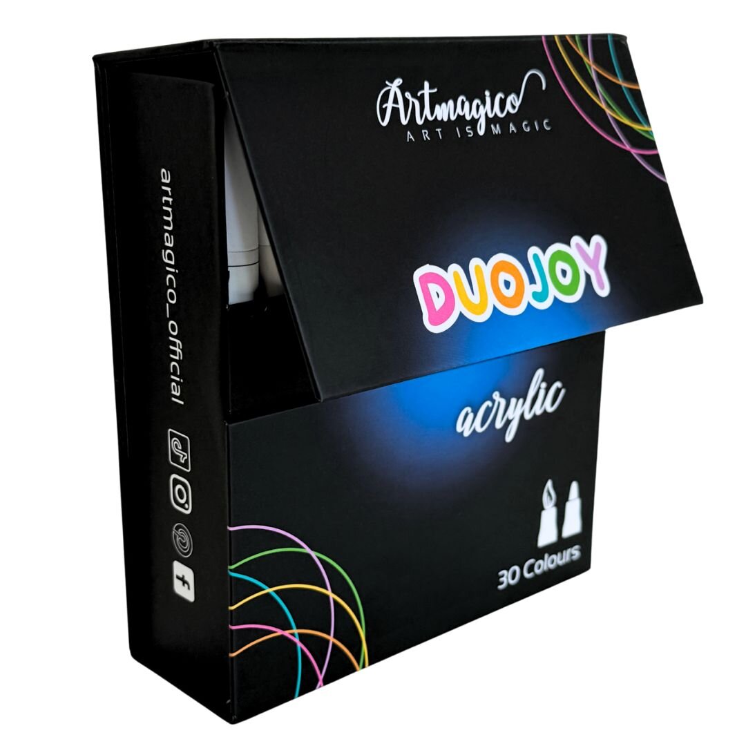 Oboustranné akrylové fixy s 30 sytými barvami a dvěma typy hrotů – porézním na detaily a brushpenem na kaligrafii i malbu. Vhodné na papír, dřevo, kámen, sklo i plátno. Označení typu barvy na každém víčku. prečítať celé