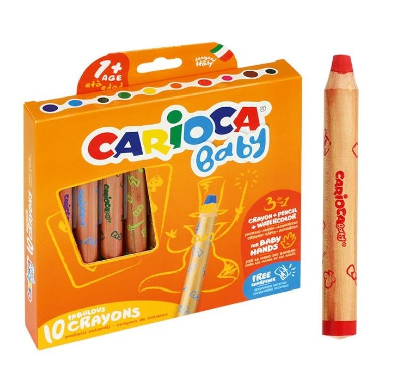 Wyjątkowo grube okrągłe kredki- przeznaczone dla małych dzieci, od 1 roku życia- 3w1: mogą być używane jako tradycyjne kredki, kredki świecowe lub akwarele- supermiękki i wydajny grafit w jaskrawych i wyrazistych kolorach- ostrzone- średnica grafitu 10 mm- zgodne z wymaganiami Unii...