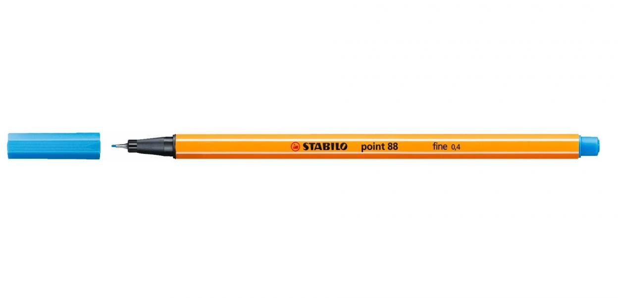 Uniwersalny cienkopis do pisania, podkreślania, kreślenia i kolorowania. Mocna, oprawiona w metal końcówka jest odporna na złamania i rozwarstwienia, co gwarantuje wysoki komfort pisania aż do całkowitego wyczerpania tuszu. Grubość linii - 0,4 mm. Wentylowana skuwka umożliwia oddychanie w przypadku nagłego połknięcia. Kolor jasny niebieski.