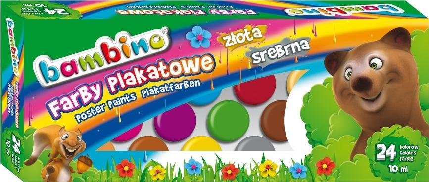 Plagátové farby 24 farieb 10ml BAMBINO
