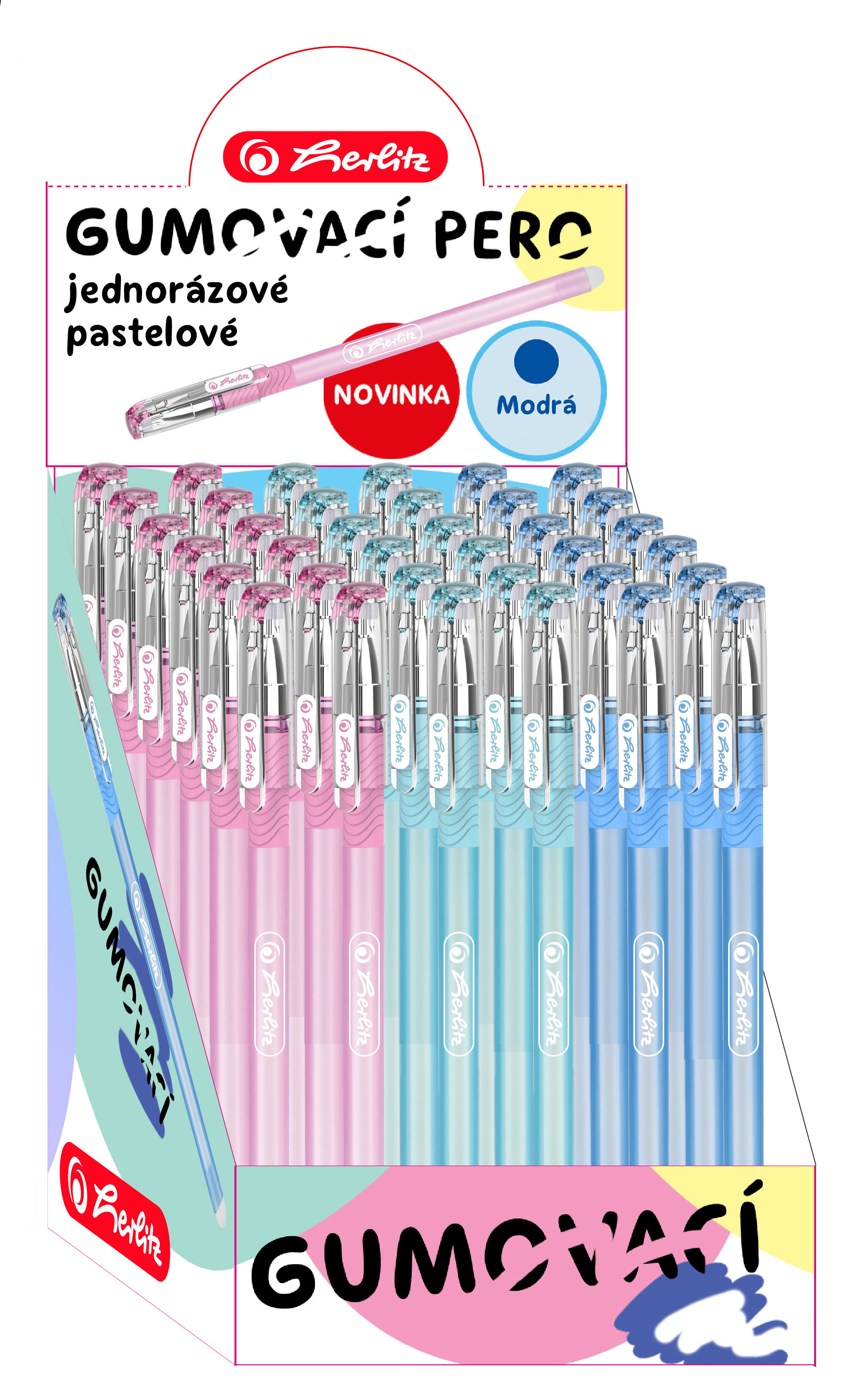 Gumovací jednorázové pastelové pero s víčkem, šířka stopy 0,5mm, modrá náplň, délka pera 15 cm prečítať celé