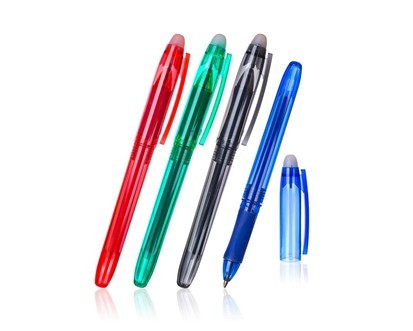 Sada gumovacích per se šířkou stopy 0,5 mm jsou vybavena speciálním inkoustem. Napsaný text zneviditelníte zahřátím na 65 st. C., které vzniknou třením (gumováním) plastového zakončení pera na papíře. Znova se objeví při teplotě nižší než -15 st. C. Nepoužívejte na oficiální dokumenty. Sada se skládá ze čtyř barev - modrá, červená, zelená, černá. Pero má ergonomický protiskluzový grip, který usnadňuje držení pera při psaní.