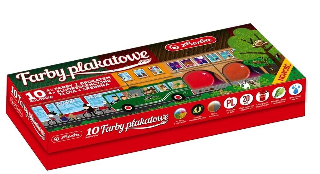 Farby plakatowe szkolne 10 kolorów x 20ml